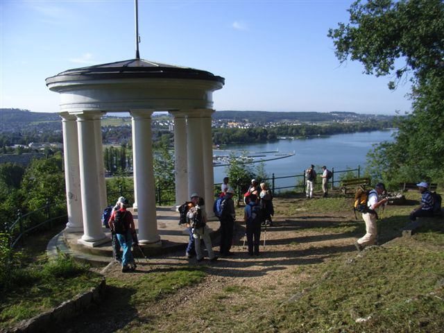 Die Sonne am Himmel, die richtige Temperatur, ausgerüstet mit viel Humor, so ist ideales Wanderwetter. Fünfzehn Teilnehmer treffen sich am Bahnsteig. Der Zug um 7 Uhr 20 führte uns via Olten nach Biel. Wir durften sogar zwei Gäste, Petra und Stephan, aus unserem nördlichen Nachbarland begrüssen. Sie waren mit von der Party bei unserer Entdeckungsreise zum Bielersee. Ausgerüstet für das leibliche Wohl, gutem Mut und Energie zum Durchhalten, fuhren wir auf der Neubaustrecke via Solothurn zum Ausgangsort. In Biel angekommen, die Bettwärme war endlich verflogen, begrüsste uns Bruno nochmals und gab uns die nötigen Informationen des Tagesablaufes bekannt. Man kann nie wissen ob jemand verloren geht, deshalb hatte Mary den Spürhund Joja, der für Mäusefang abgerichtet ist, mit auf der Tour. Viele Spuren des Hochwassers waren an der Seepromenade noch sichtbar, das vor einer Woche weite Teile unseres Landes überzog. Kurzes einmarschieren auf ebenem Gelände, dann fing der Anstieg über eine sanft angelegte Stiege durch den Wald an. Das Bergan war sachte und es wurde viel geplaudert dementsprechend war das Tempo auch gemütlich. Zwischen den Bäumen immer wieder eine herrliche Sicht auf Biel, den See und die nähere Umgebung. Schnell bekam man das Gefühl schon recht hoch gestiegen zu sein. Vor uns stand plötzlich der mit acht Säulen gebaute Aussichtspavillon. Weissleuchtend steht er im Walde und von weit ist er sichtbar. Durch den Buchenwald ging es nun leicht auf und ab und unmerkbar erreichten wir das Berghüsli. Bei dieser Waldlichtung wurde die erste kurze Rast angesagt . Die Höhenwanderung durch Wald und vorbei an Hecken, war ideal, denn die Sonne brannte schon recht kräftig auf den Südhang am Bielersee. Die kräftigen hochstämmigen Buchenbäume die uns in riesiger Zahl Spalier standen weckten bei Hans die Freude zur Waldarbeit bis zum Cheminéeholz. Gemütlich zog es uns weiter zum Weiler Gaicht auf 678 ü.M. Das Panorama wird plötzlich fantastisch. Die Berner- und Freiburger Berge, zum Teil schwach in den Wolken, die Petersinsel im See. Jean Jacques Rousseau, Philosoph und Kulturkritiker 1712-1778 fühlte sich angeblich nirgends so wahrhaft glücklich wie auf der Insel. Wo ist die Chüngeliinsel? Ist das der Murtensee im Hintergrund oder ein Zipfel vom Neuenburgersee? Der Mont Vully liegt er links, nein rechts? Erlach liegt vor dem Jolimont. Otto nimmt die Karte und nun wird die Eidgenössische Geographiestunde im Freien abgehalten. Der Hageneck Kanal der Bantiger und der Gurten, die stehen auch noch in der Gegend und wenn es klarer wäre, sehe man die Savojer Berge. Am Holzhund und Holzpilz vorbei, das Haus wäre offen, aber zuerst muss der Rucksack entlastet werden. Hinter einer Wegbiegung, versteckt von einem Maisfeld, stehen plötzlich Lina und Sepp vor uns. In unmittelbarer Nähe steht das Schützenhaus und da ist Mittagsrast angesagt. Kulinarisch zufrieden und mit fast leerem Rucksack, legen sich die Wanderer zum Nickerchen in den Halbschatten oder an die Sonne. Die Einen unterhalten sich lebhaft über Botanik, Geologie und Zoologie. Auch ernsthafte Themen, Witzen und sonstige Weisheiten werden nach dem Mittagsschlaf geboten. Trotzdem muss man sich entschliessen weiter zu wandern, denn zur „Gastig“ war im “Aux Troi Amis„ in Schernelz reserviert. In der Twannbachschlucht benutzten wir den Holzsteg. Das klare Wasser, der heute friedlich und sauber dahin plätschernde Bach, das Schattenspiel der Blätter, das ist Balsam für die Seele. Da könnte man die Zeit des Alltagstresses schnell vergessen. Vorbei an ausgewaschenen Kalksteinen und Eiszeitfindlingen (der Rhonegletscher soll sie dahin verfrachtet haben), stiegen wir leicht an und wanderten durch die ersten Reben dem neuen Etappenziel entgegen. Gestärkt mit Kaffee, Dessert und ortsüblichen Getränken ging es bergab weiter zwischen Roten- und Weissen-Trauben behangenen Rebstöcken zum Schiffssteg nach Ligerz. Die ersten Traubenbeeren wurden genascht oft mit verzogener Miene. Selber „z’schuld“ die sind noch “suuur“. Bei der Kirche von Ligerz, Fotomotiv und Heiratskirche, trat ein Brautpaar glückstrahlend, hinter blumenstreuenden Kindern aus dem Kirchenportal. Die Alphornklänge zu ihrem Feste durften wir mitlauschen. Zuhauf folgte neuer Gesprächsstoff angereichert mit gehabtem „Weissem“ und den eigenen Lebenserfahrungen. Am Schiffsteg wurden wir musikalisch mit der Winzermusik von Ligerz unterhalten. Nur fröhliche Gesichter, aufgeheitert durch Akkordeon- und Klarinetten-Klänge, mitsingend oder summend warteten die Passagiere auf das Schiff das auch uns nach Biel transportierte. Die Stimmung am Steg war wie nach einem Weinkellerbesuch, der Duft der Reben macht angeblich schon glücklich. Alles war super organisiert, hat bei Bruno der Zufall da kräftig mitgespielt? Die Seereise war noch die Krönung der Wanderung. Nochmals hatte man die Chance mit Blick hinauf an den Berghang die Wanderung in Gedanken nachzuvollziehen bis zur Schiffsanlegestelle in Biel. Ein kurzer Marsch zum Bahnhof und die SBB brachte uns elegant wieder an unseren Startort zurück. Nicht überfordert und doch was geleistet, etwas erlebt und auch viel gelacht. Bruno, es war ein herrlicher Tag. Wir möchten dir alle recht herzlich danken.